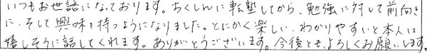 ちくしんに来て、成績が上がりました。ありがとうございました。