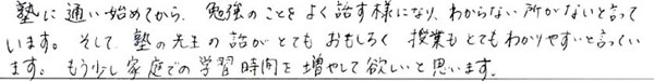 塾に入って勉強が少し楽しくなりました。
