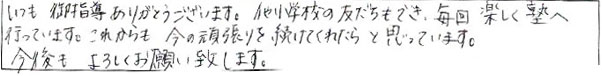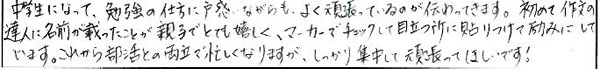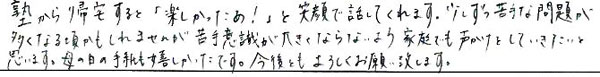 ◆授業がおもしろいので、塾にいつも行きたくなります。(中1筑山)