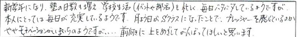 ◆定期考査の点数が300点くらいから400点を超えるようになった。(中3太東)