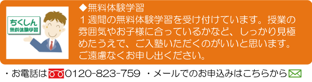 勉強は自ら進んでやる方が身に付きます。やらされるのではなく、主体的に学べるようなサポートと好奇心を駆り立てるような授業をしていきたいと思います。担当教科以外にも、質問相談何でも受け付けますので、気軽に声をかけてください。ちくしんで一緒に頑張っていきましょう。