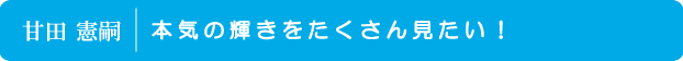 テストや入試で結果を出すことが塾の大きな役割ですが、同時に人として一生の宝になるものを育みたいと考えています。継続する、挫折を乗り越える、人を思いやる、今できることに全力を注ぐ。目の前のことに真剣に向き合い本気になった生徒の輝きは、自分だけでなく周囲を変える力さえ持ちます。常に本気で生徒に接し、生徒たちが前に進むエネルギーを生み出せる人間でありたいと思っています。